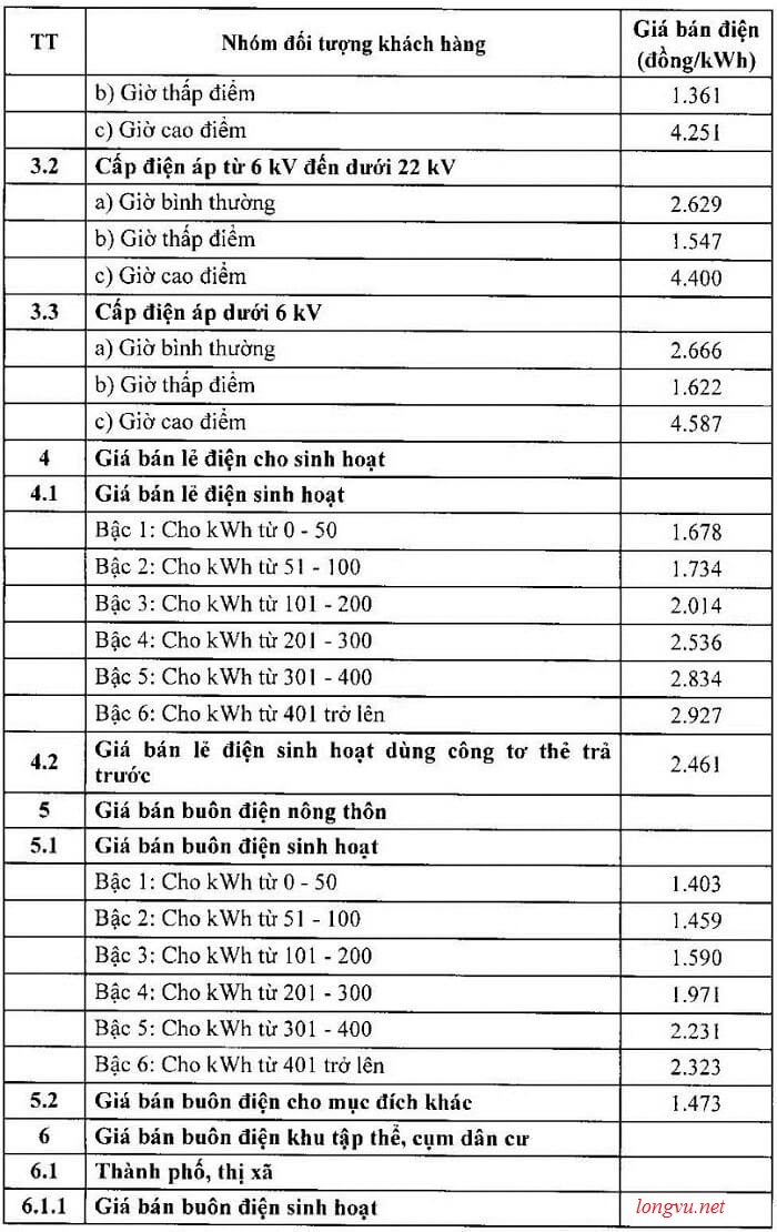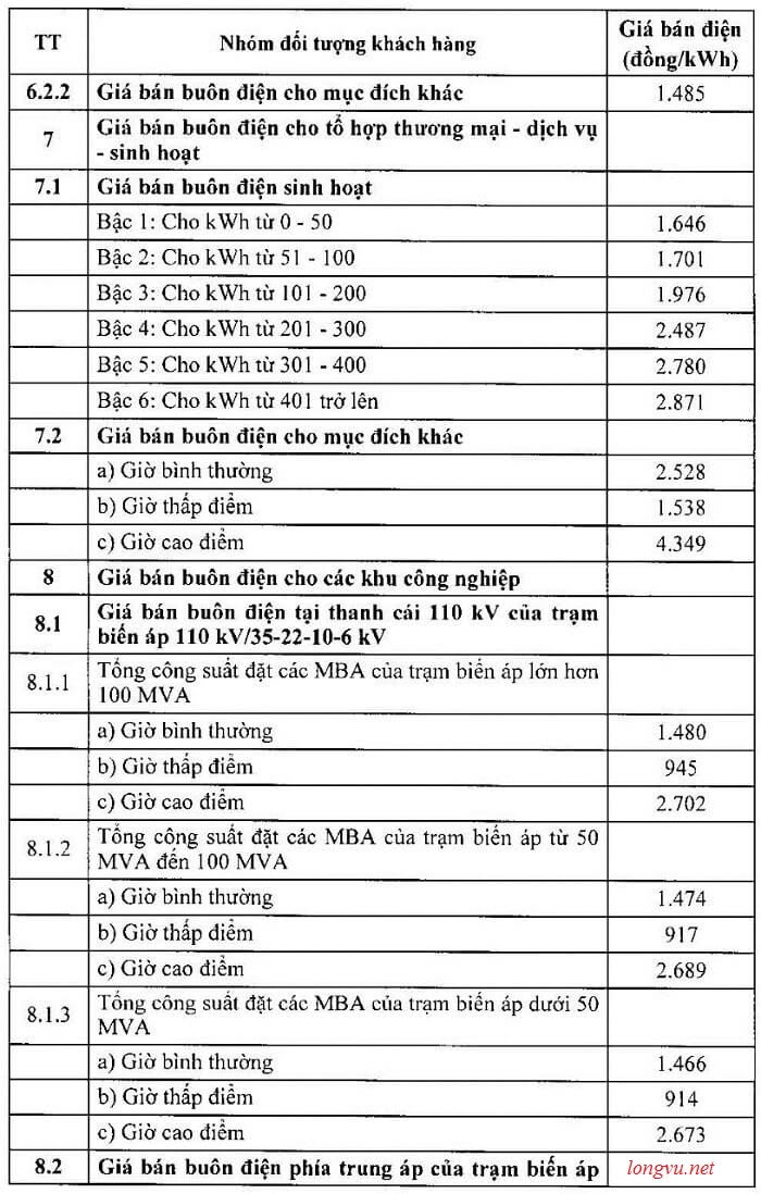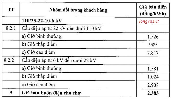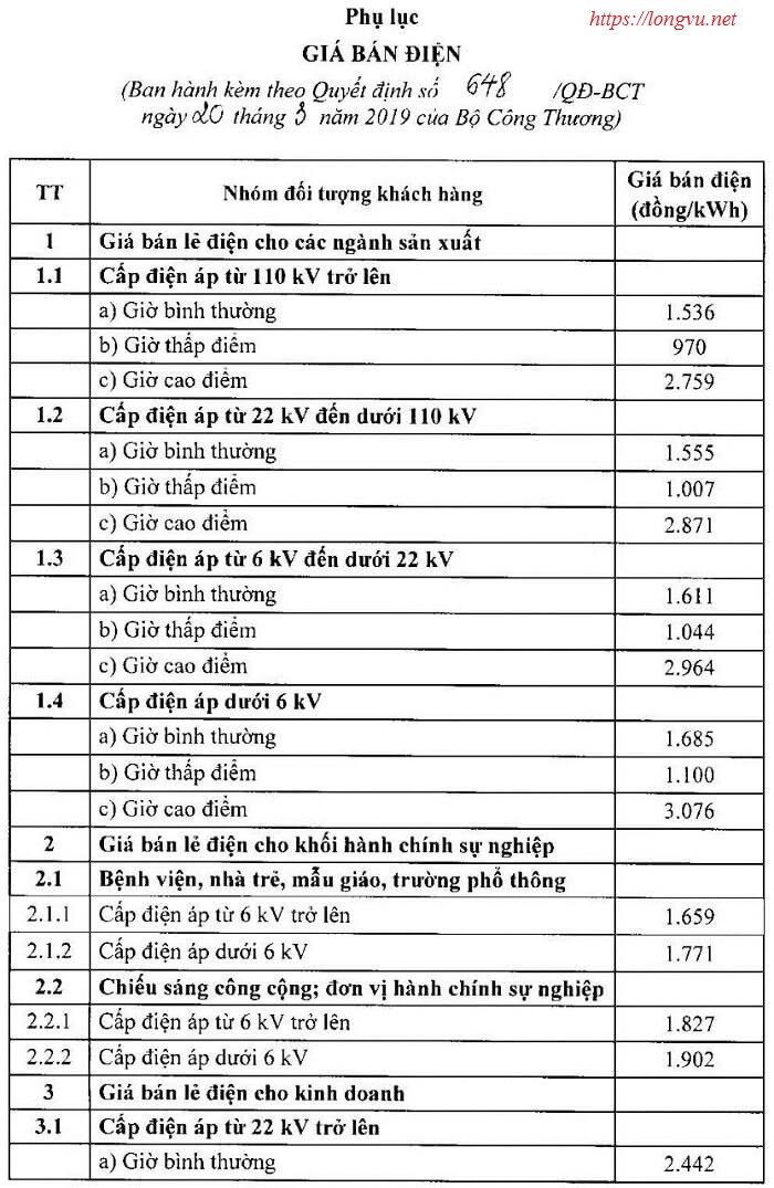 Bảng giá điện kinh doanh, sản xuất, sinh hoạt 2019 theo quyết định 648/qđ-bct.