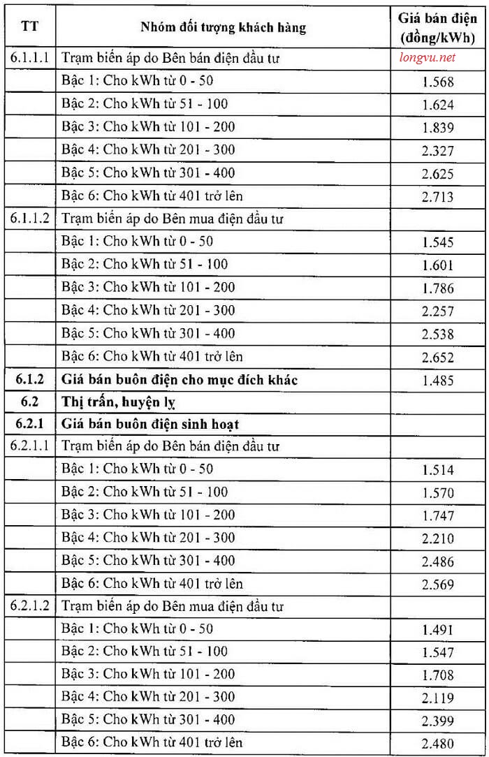 Dưới đây là bảng chi tiết mức giá điện phân loại theo nhu cầu sử dụng trong phụ lục được scan từ quyết định số 648/QĐ-BCT ban hành ngày 20/03/2019 của Bộ Công Thương .Đây là bảng giá mới nhất được áp dụng ,nếu có bảng giá mới,chúng tôi sẽ cập nhật sau.