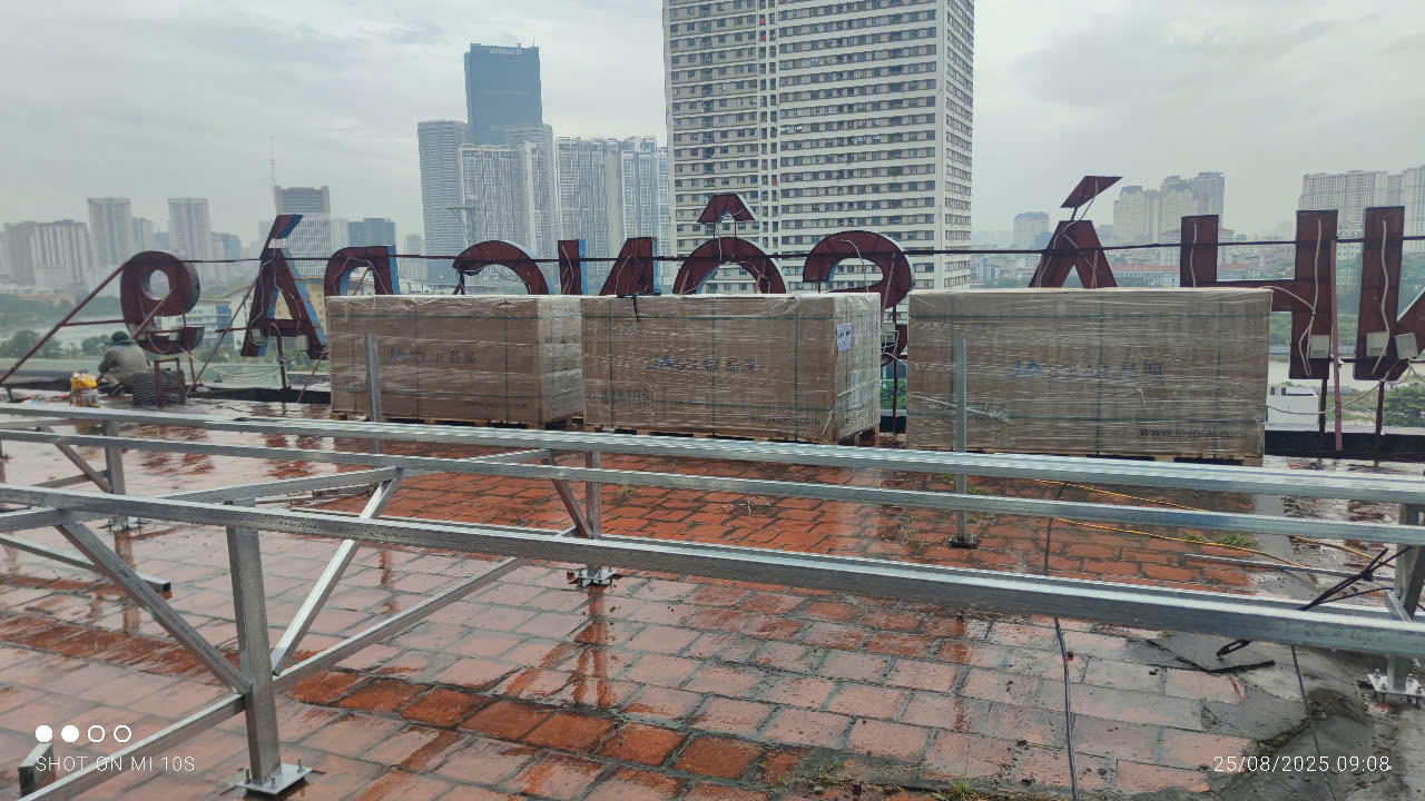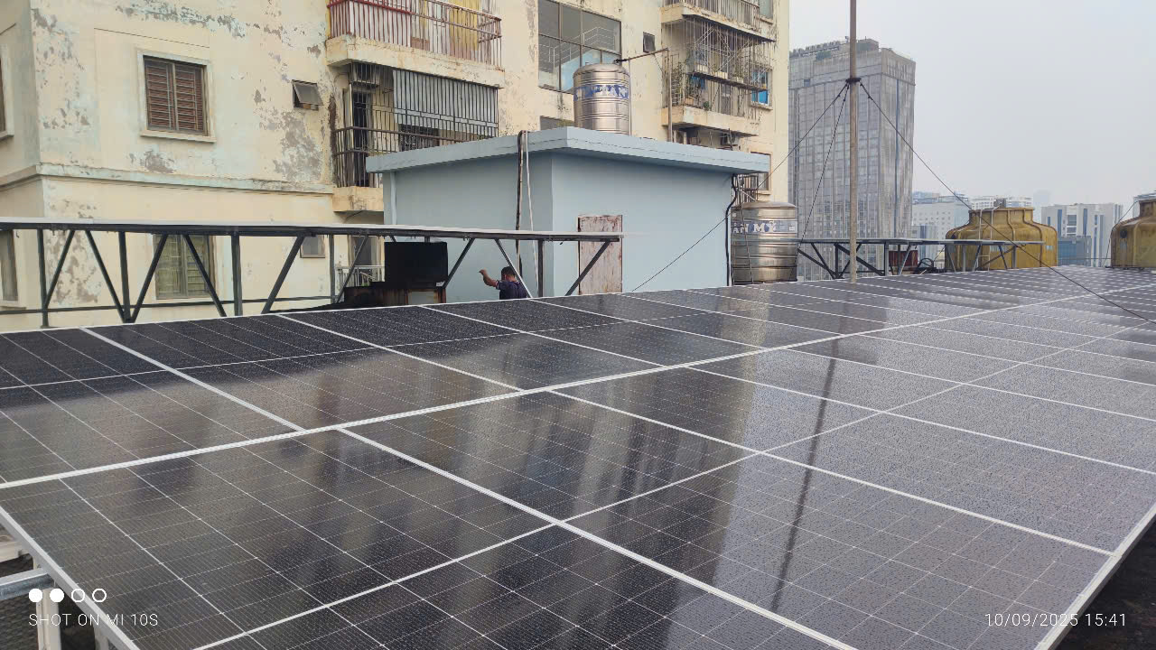 Đây là công trình lắp đặt điện năng lượng mặt trời 82Kw tại tòa nhà sông Đà 9 của công ty Long Vũ.