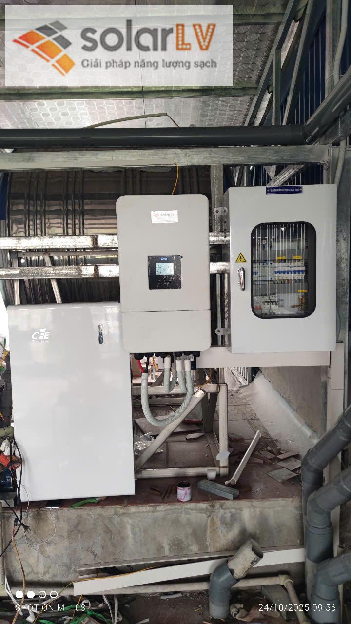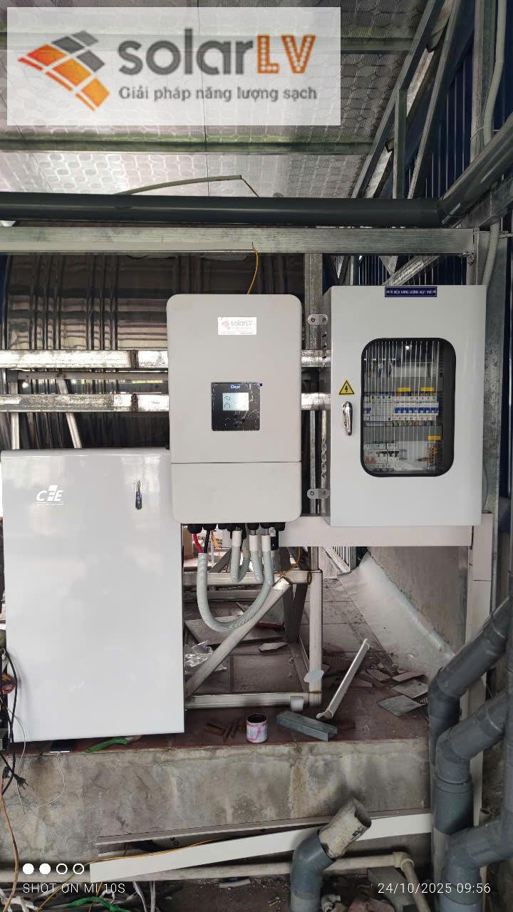 Thiết bị chính: Tấm pin mặt trời (Jinko, Longi), Inverter hòa lưới bám tải hoặc Hybrid (Deye, Huawei, Growatt).