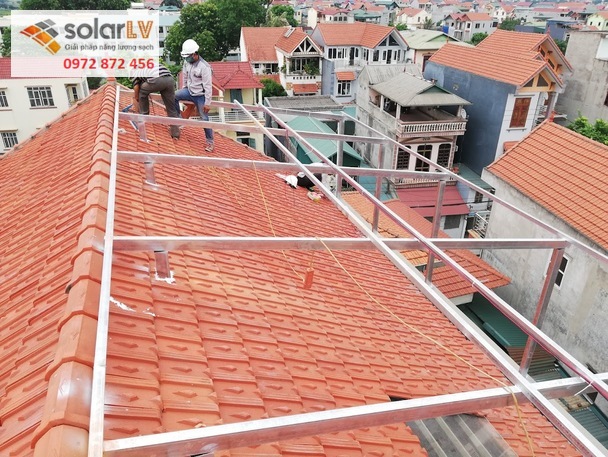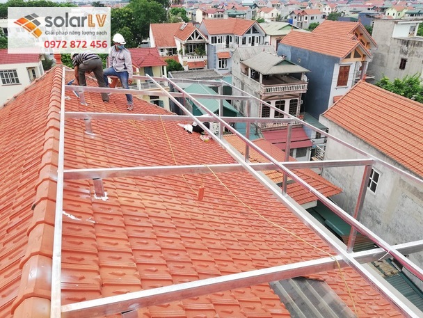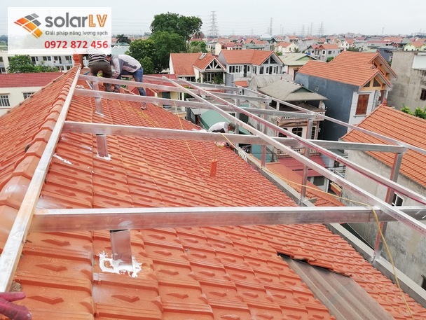 Kết cấu lắp đặt: Khung thép chuyên dụng trên mái ngói