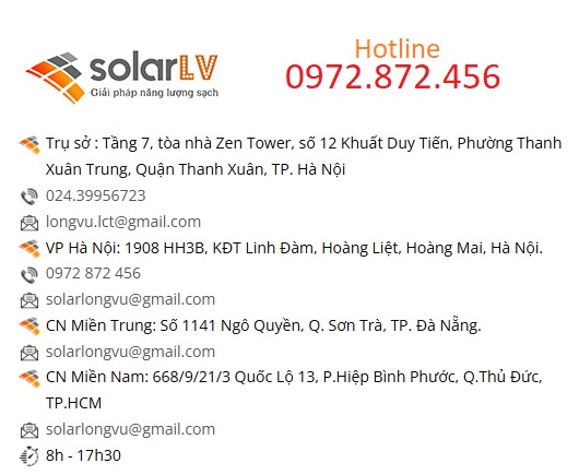 Toàn bộ vật tư do Công ty cổ phần đầu tư xây dựng và thương mại Long Vũ (Solar LV) cung cấp – cam kết chính hãng, bảo hành rõ ràng, thi công đúng kỹ thuật.