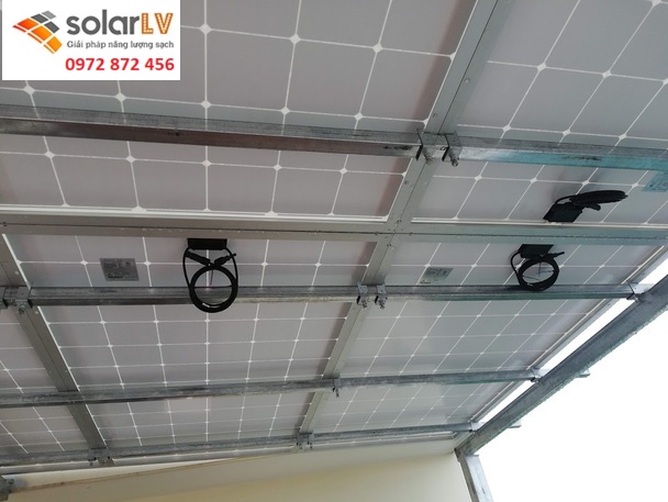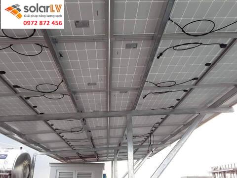Lắp đặt khung thép và tấm pin: Sử dụng khung thép chắc chắn, kết hợp ray nhôm để cố định 8 tấm pin Canadian 550W.