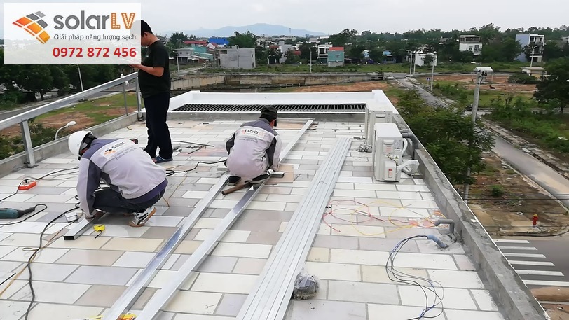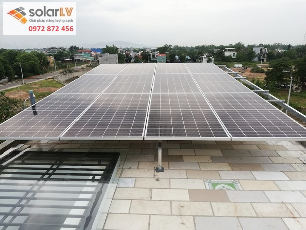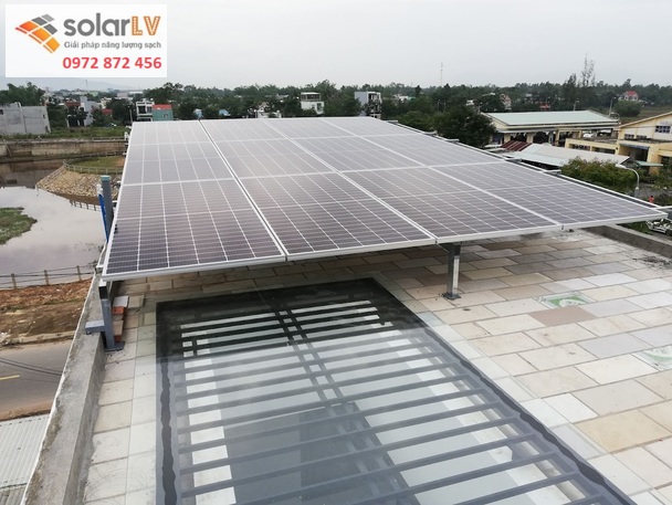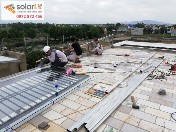Hệ thống khung: Khung thép lắp đặt trên mái, được thiết kế chắc chắn, chống chịu tốt với thời tiết khắc nghiệt của miền Trung.
