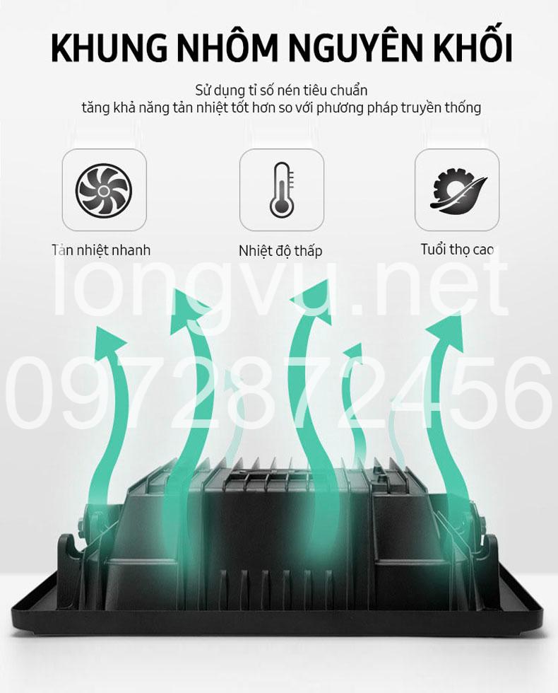 Vỏ đèn bằng nhôm đúc nguyên khối, chịu lực tốt, chống ăn mòn.