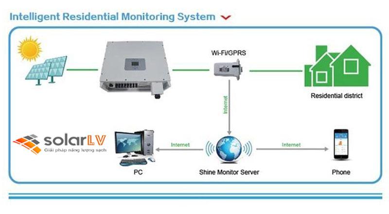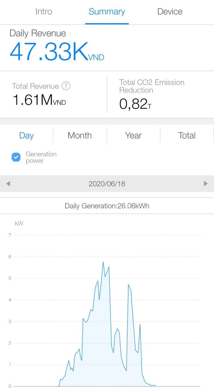 - Phạm vi công việc: Nhà thầu là Công ty CP đầu tư XD và TM Long Vũ sẽ thực hiện trọn gói các dịch vụ: Thiết kế - Cung cấp vật tư - Thi công lắp đặt - Vận hành và chuyển giao hệ thống. Hệ thống hoàn thiện sẽ nối vào tủ điện tổng của công trình. Quý khách có thể theo dõi sản lượng điện năng được sản sinh hàng ngày, hàng tháng và hàng năm trên app được cài đặt, đồng bộ trên smartphone. Hàng tháng bên EVN sẽ gửi thông tin giá trị và lượng điện mua vào và bán ra vào Email mà đơn vị đăng ký với điện lực.