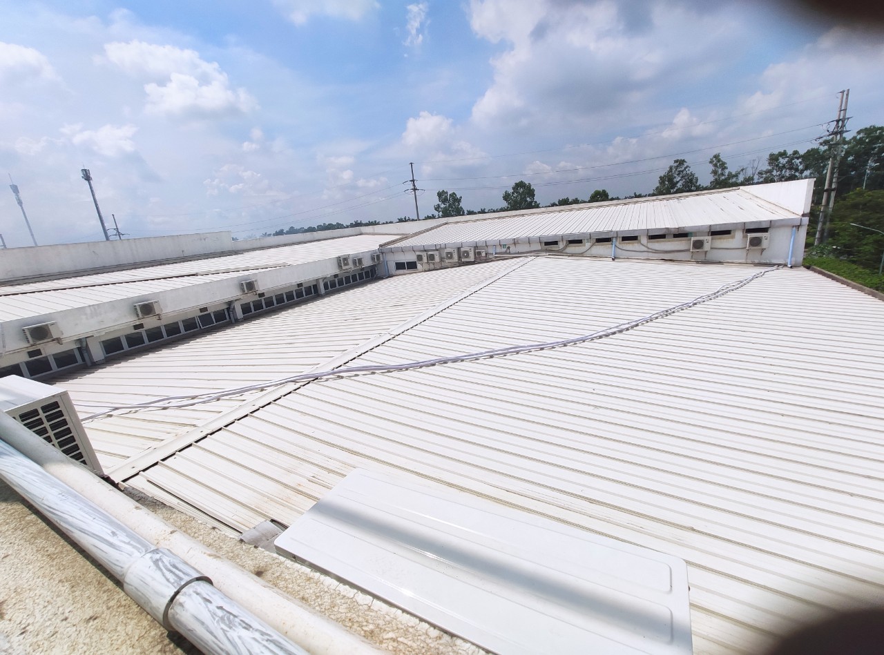 Các tấm pin mặt trời có tác dụng che nắng trực tiếp, giảm lượng nhiệt hấp thụ vào mái tôn bên dưới, từ đó giảm nhiệt độ bên trong xưởng từ 3–5°C.