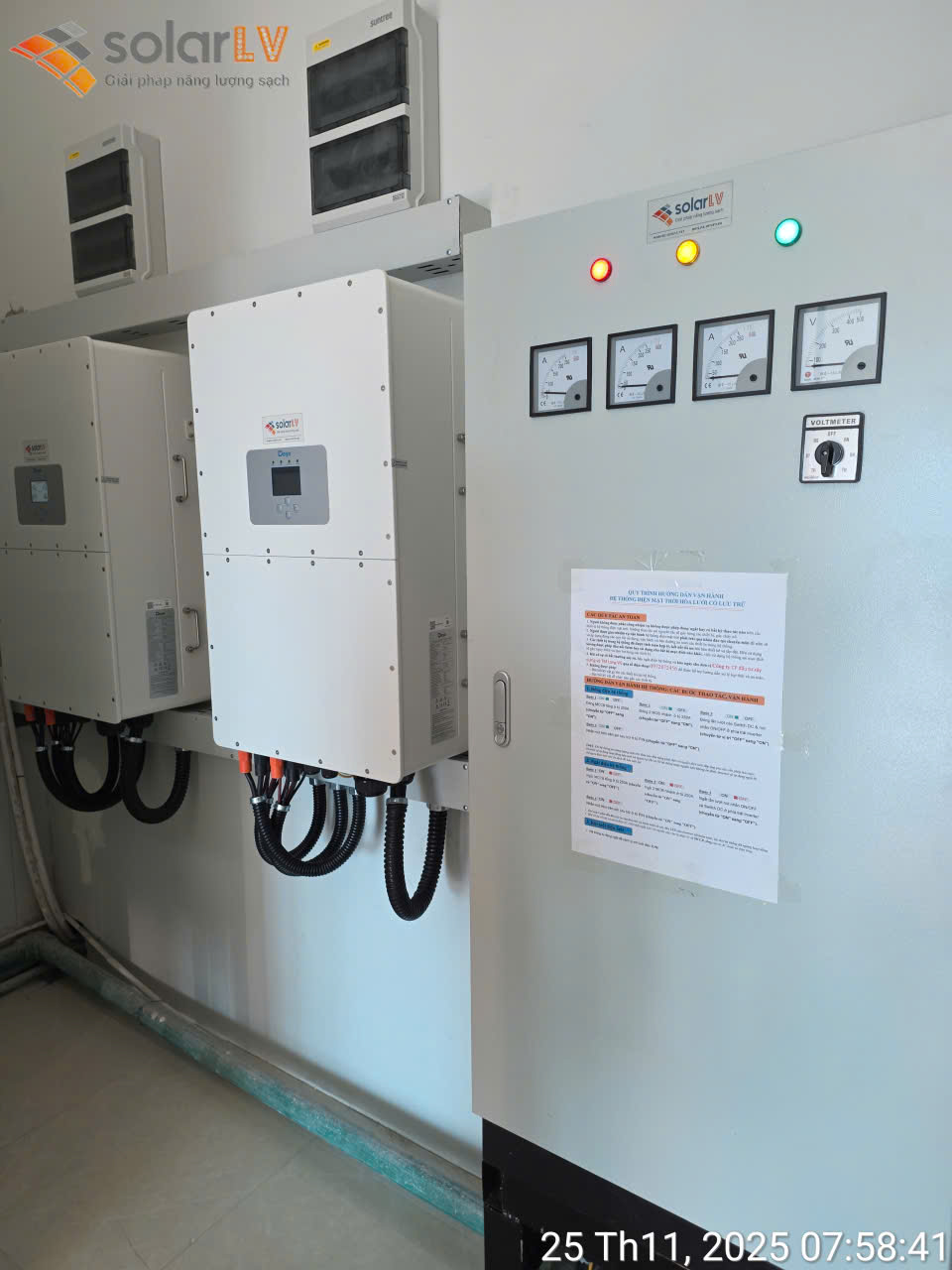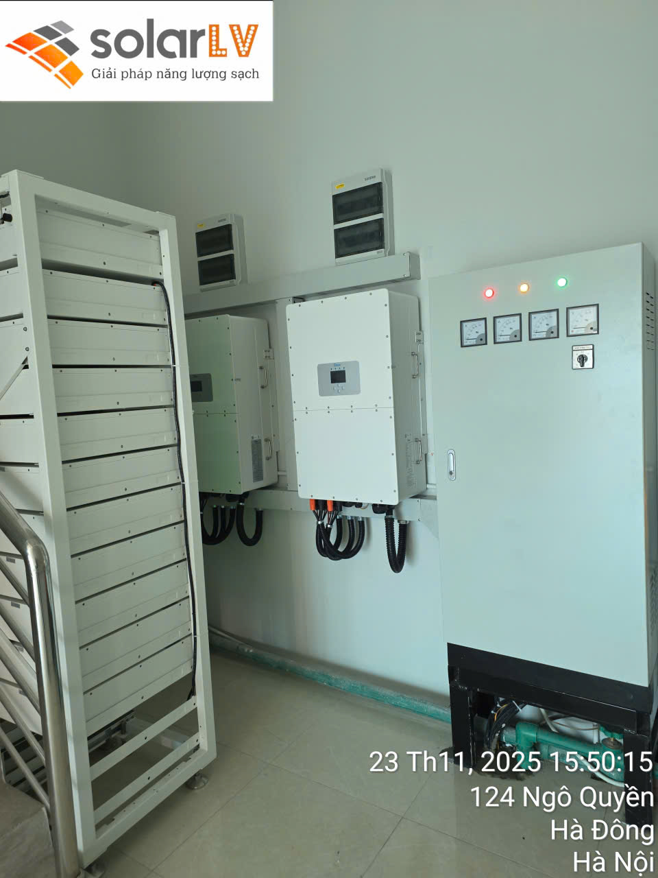 Hệ thống tủ điện (Inverter): Sử dụng thiết bị Deye thế hệ mới, được lắp đặt khoa học, có màn hình theo dõi thông số thực thời.