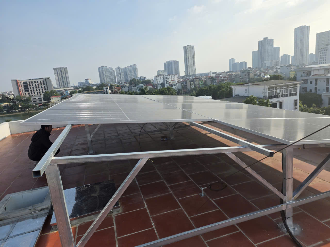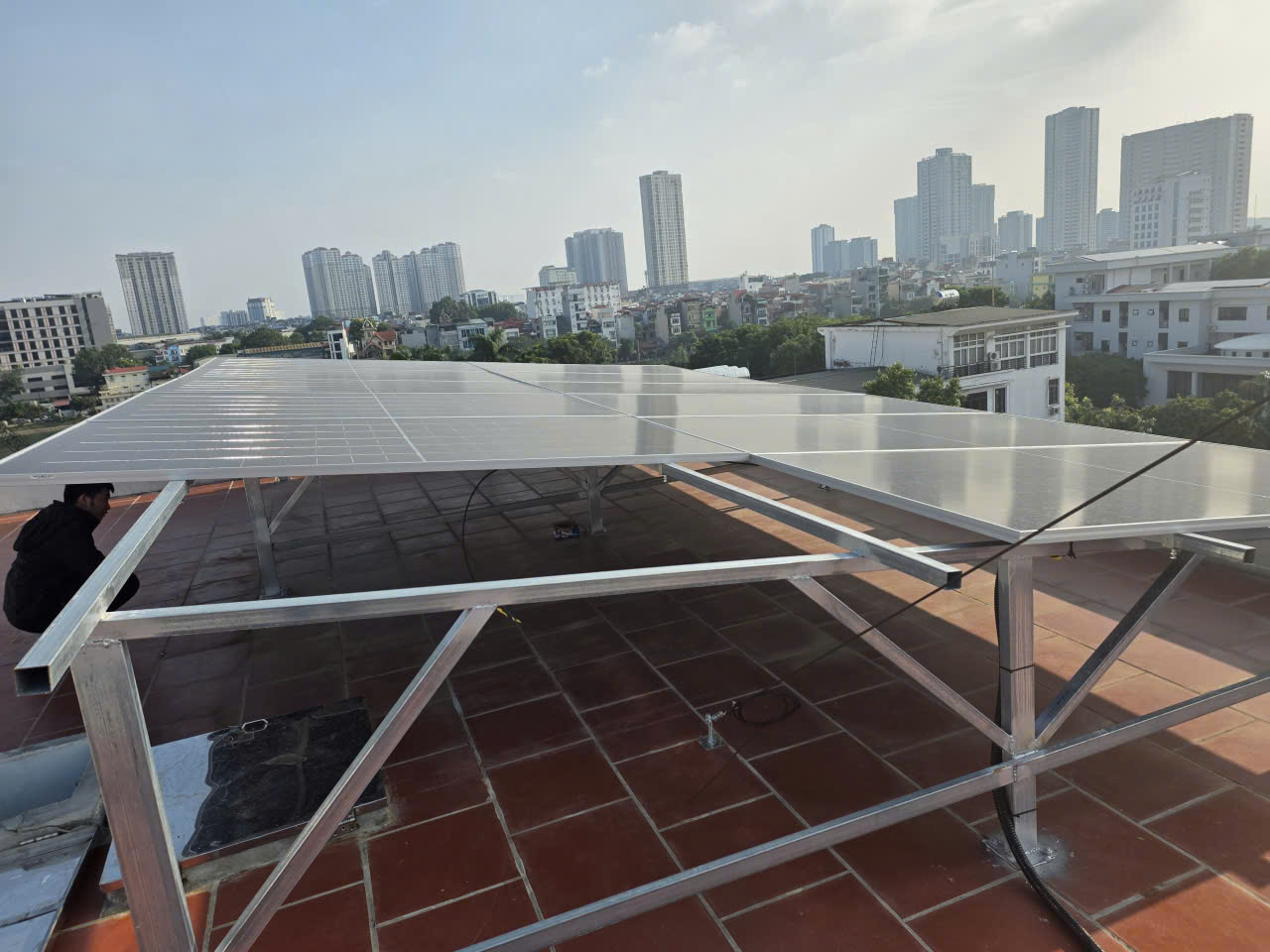 Qua hình ảnh thực tế thi công tại tòa nhà S21, có thể thấy sự chuyên nghiệp của Long Vũ Solar: