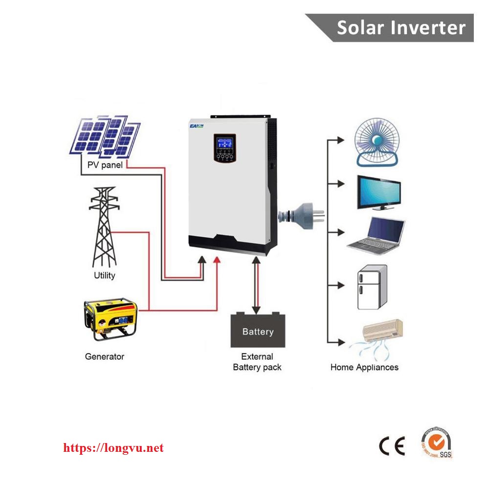 - Một biến tần năng lượng mặt trời giúp thay đổi DC thành pin hoặc AC. Điều này hỗ trợ những người sử dụng một phần điện.