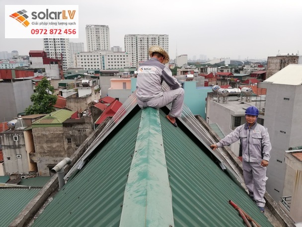 Đội kỹ thuật Solar LV khảo sát thực tế mái nhà, hướng nắng, độ nghiêng và phương án đi dây tối ưu.