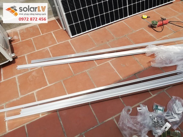 Ray nhôm, kẹp tấm pin, đầu nối MC4 và phụ kiện lắp đặt hoàn chỉnh