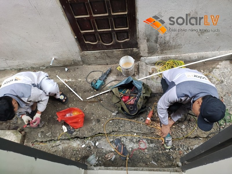 Hình ảnh 2: hình ảnh thi công tiếp địa cho hệ thống điện năng lượng mặt trời do SolarLV thực hiện
