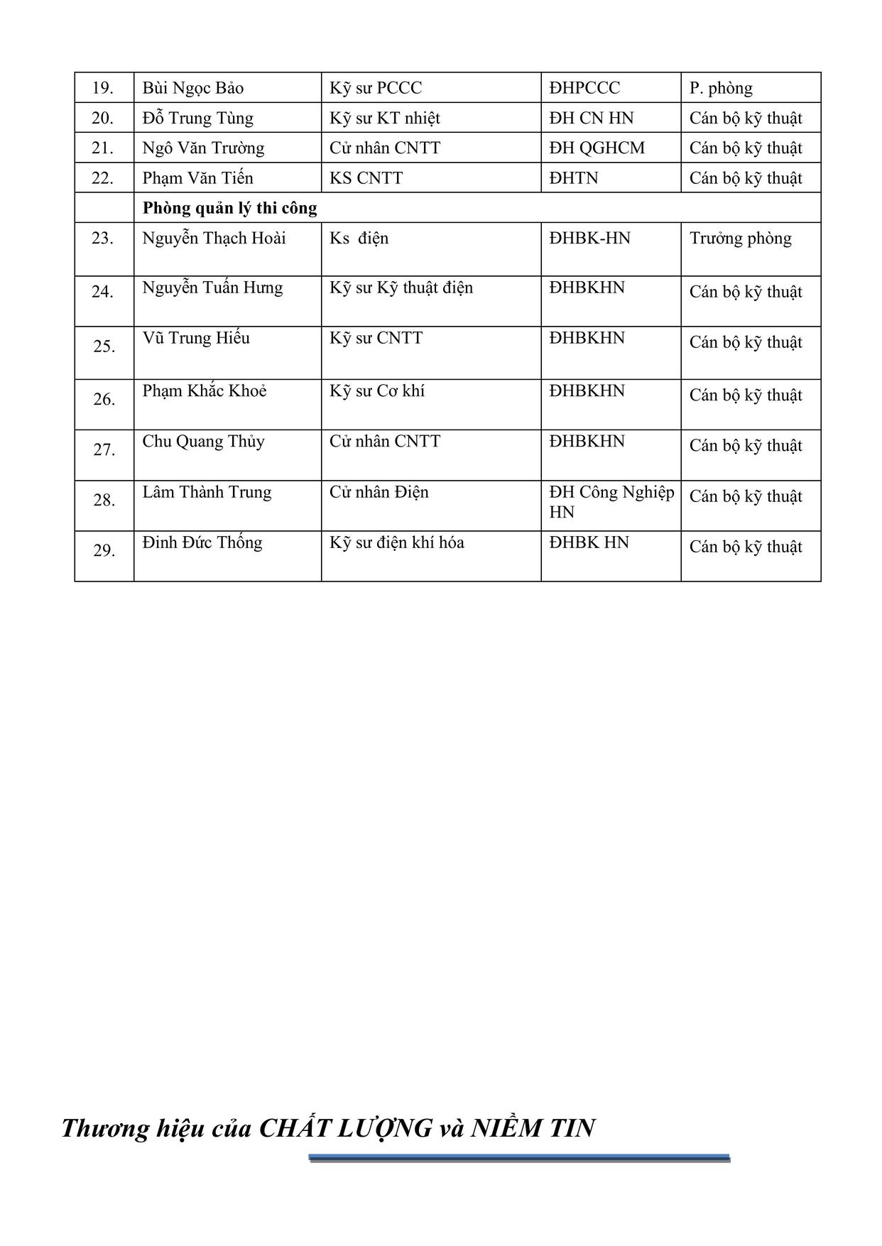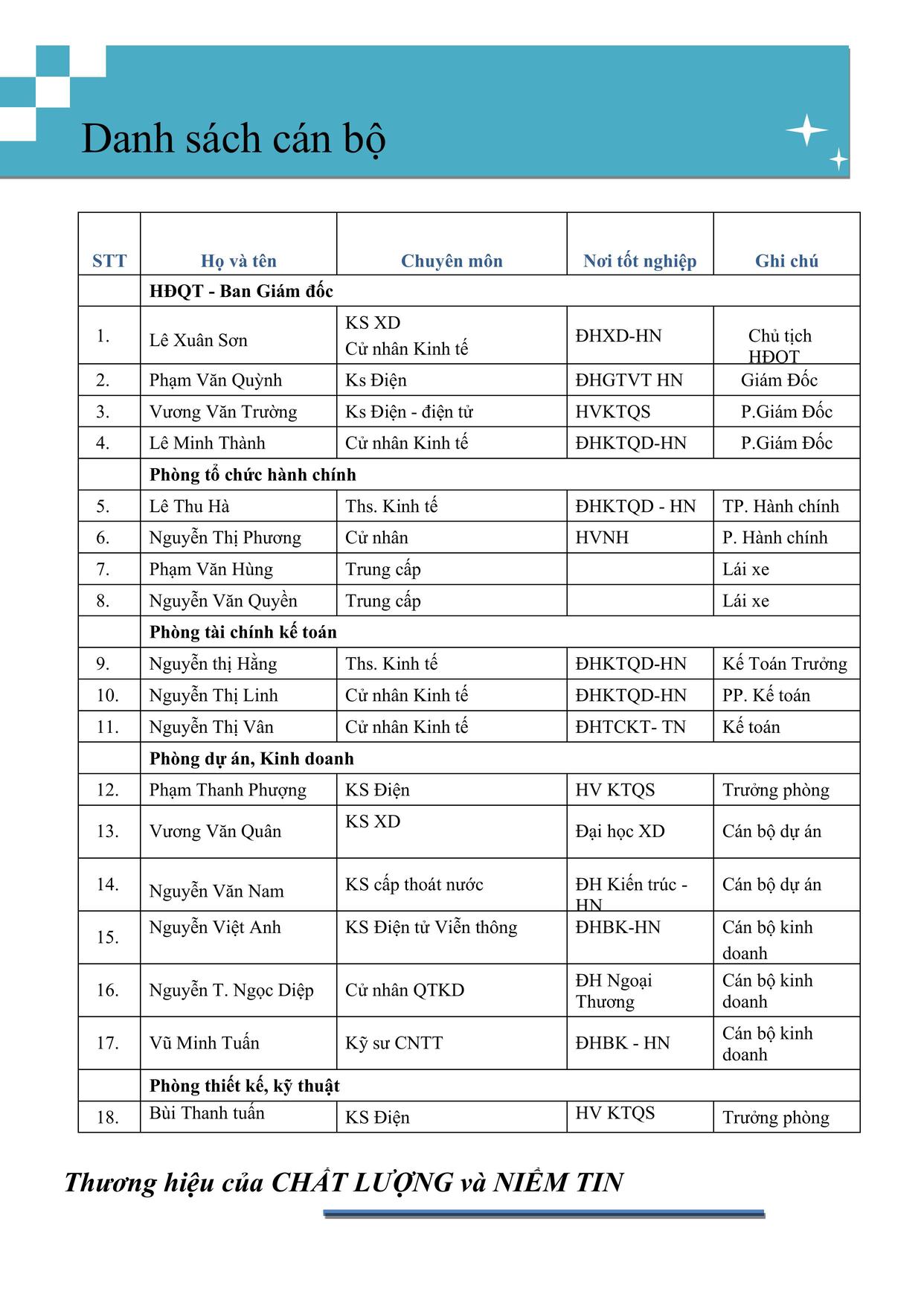 Tổng số cán bộ công nhân viên: 32 người, trong đó có 11 kỹ sư cơ điện.